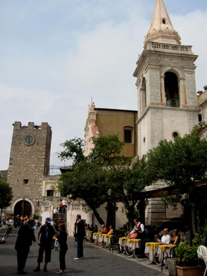 Taormina's historic Torre dell'Orologio and next door the "Wünderbar"