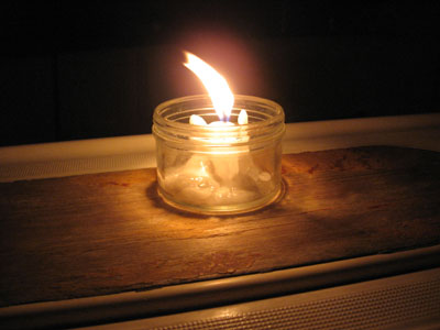 Sitting on a sailboat at night, by candlelight, in the beautiful