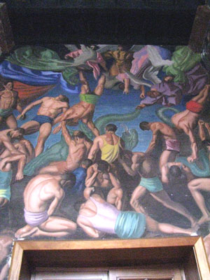 floor-to-ceiling murals that illustrated the history