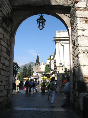 along Corso Umberto, Taormina’s main thoroughfare and a fully