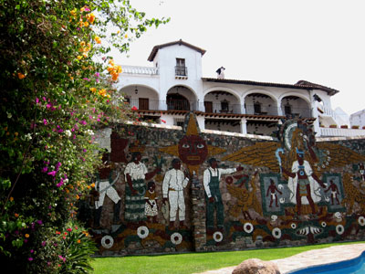 area is framed on the other side by a wall mosaic by a famous Mexican