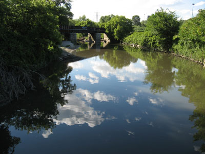 the slowly flowing Don River, one of two main rivers in Toronto.