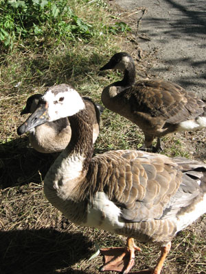 Three geese would like to be fed