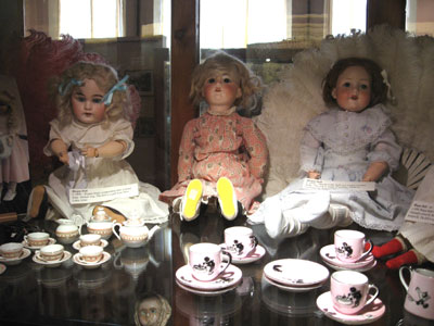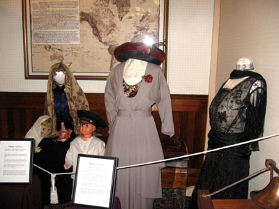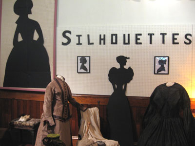 A temporary exhibit features the silhouettes of Victorian fashions.