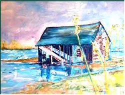 dilapidated building, previously known as the Salt Marsh Tavern,